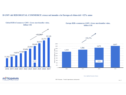 “Il comparto del B2B sta assistendo a un processo di costante digitalizzazione – afferma Roberto Liscia, presidente di Netcomm – che contribuisce alla crescita dei ricavi del settore in tutto il panorama internazionale, tanto che si stima che nel 2027 arriverà a superare i 37 miliardi di dollari a livello globale. In questo contesto, l’Europa detiene il 6% del valore globale del B2B digital commerce globale, i Paesi Apac il 79% e la Cina, da sola, oltre il 40%. In Italia, dove il settore B2B è tradizionalmente guidato da dinamiche commerciali rigide e articolate che prevedono l’intermediazione di rappresentanti di vendita nella gestione delle trattative, è necessaria l’introduzione di strumenti innovativi per rispondere alle nuove esigenze dei buyer che, anche a seguito del cambio generazionale, sono sempre più orientati verso esperienze d’acquisto agili e personalizzate”.